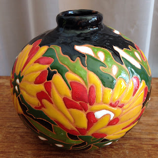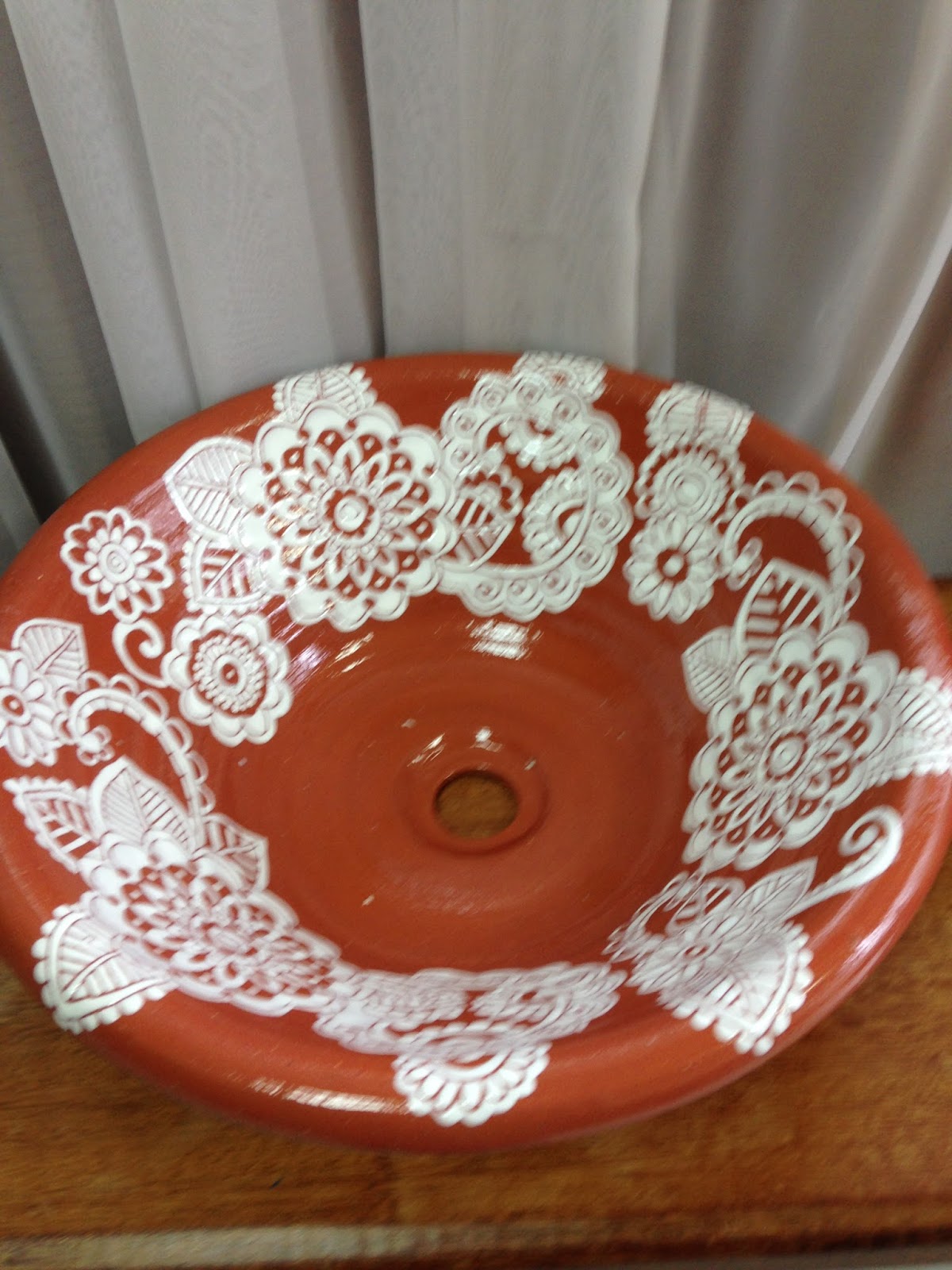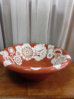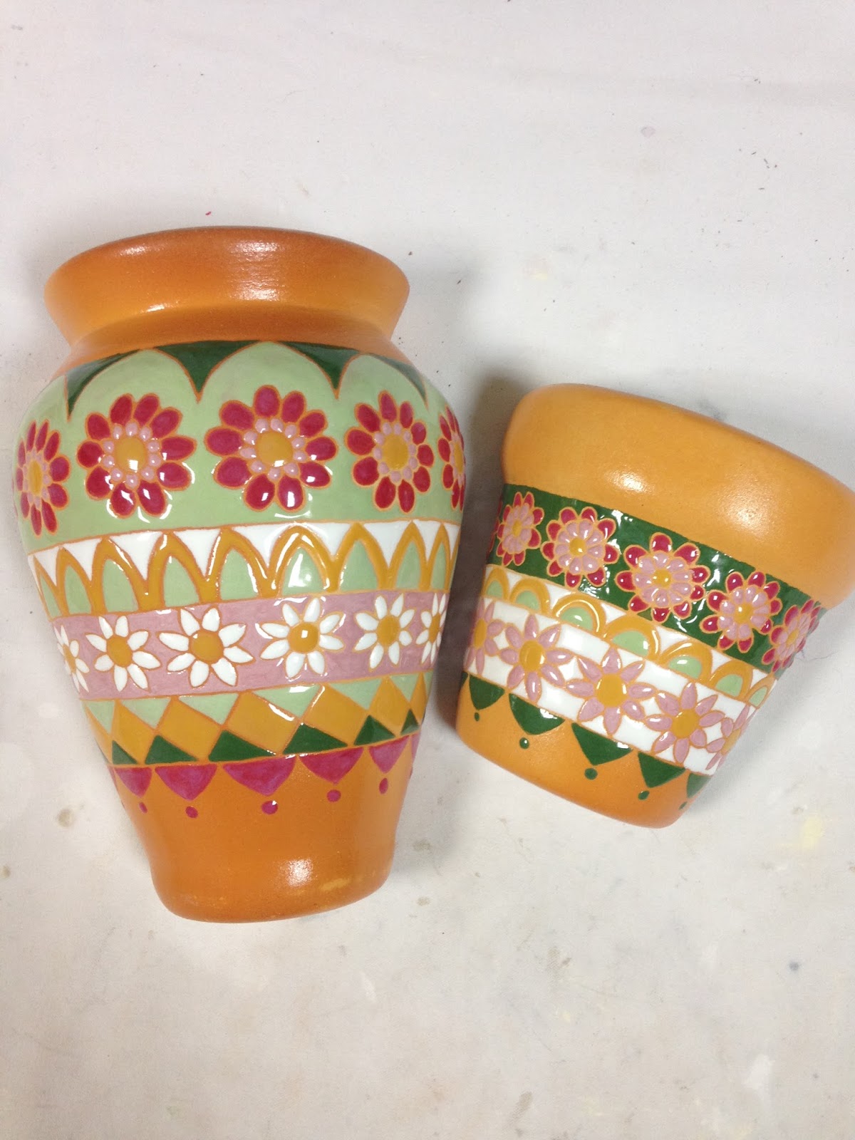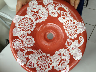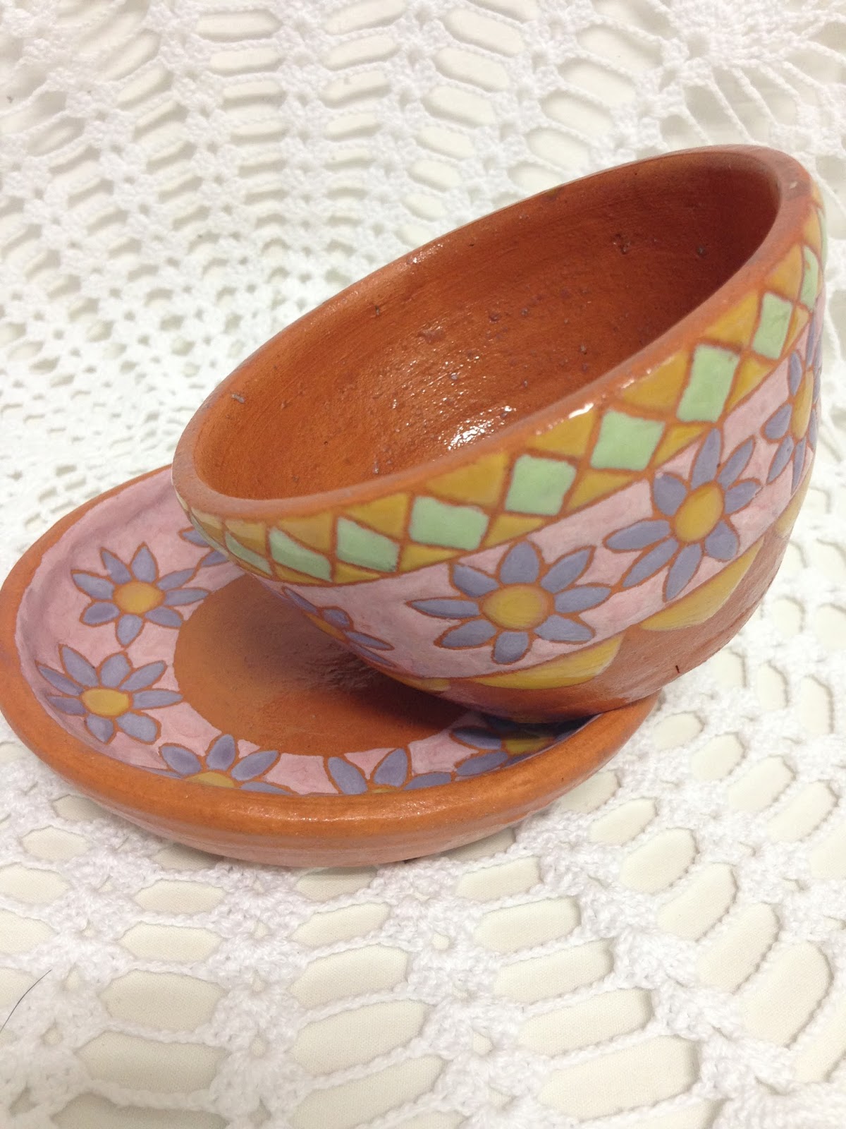 Artesanato realizado no resgate da cultura. Pintura em cerâmica com releitura das flores do tecido de "chita". Técnica da "corda seca", queimado a 980°. ** Endereço: Rua Holanda, 59 - Bairro das Nações - CEP: 88338-295 Telefones - (47)3360-9043/8412-5752
